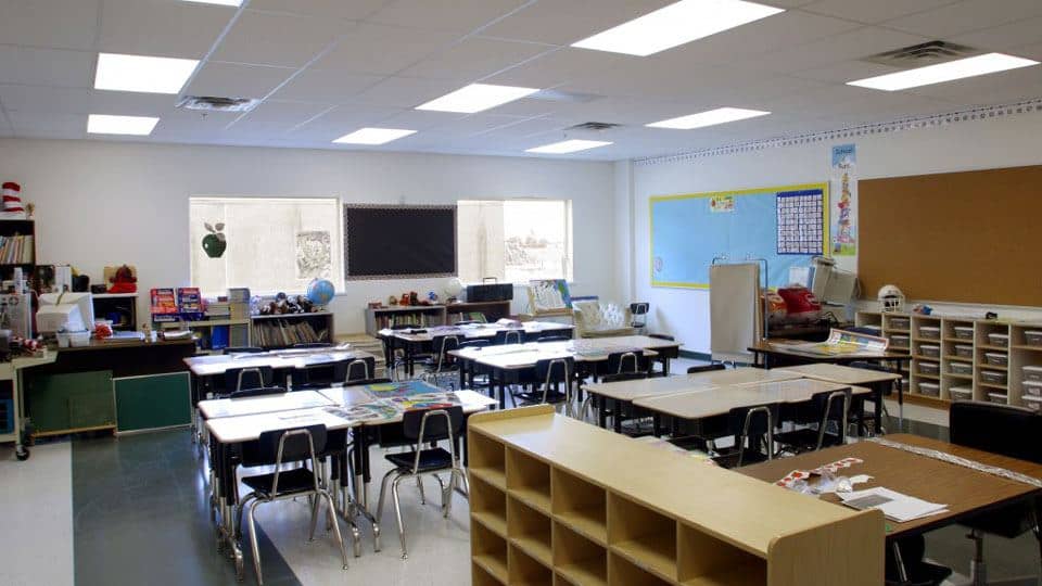 Public school accommodating kindergarten through eighth grade. Classrooms, administration areas, multimedia center, full gymnasium, and multi-use cafeteria with performing arts platform.